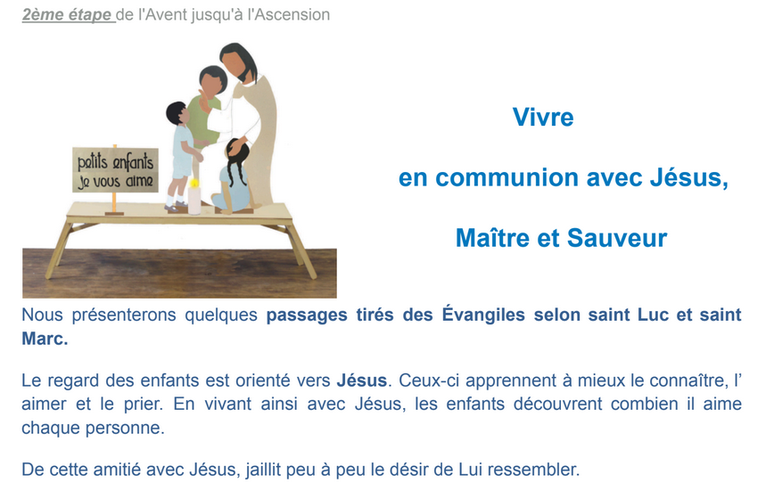 Par ailleurs, entourés par leurs familles, les enfants pourront participer à la Messe des Familles organisée en paroisse un dimanche par mois, ainsi qu'aux grandes fêtes chrétiennes de l'année.