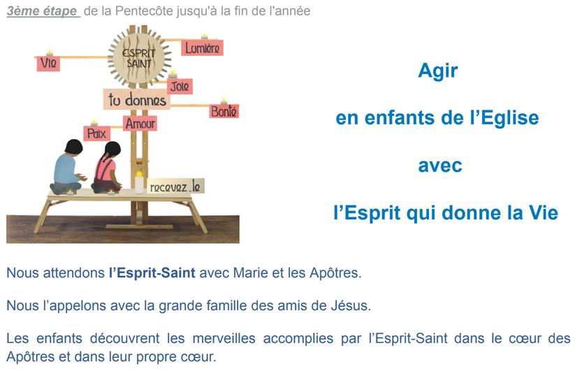 Il est accompagné soit par notre curé le Père Maximilien, notre diacre Amaury ou notre séminariste Giovanni pour un temps SPI, soit par une intervenante AFC (association familles chrétiennes) sur des thèmes liés à l'éducation de nos enfants.