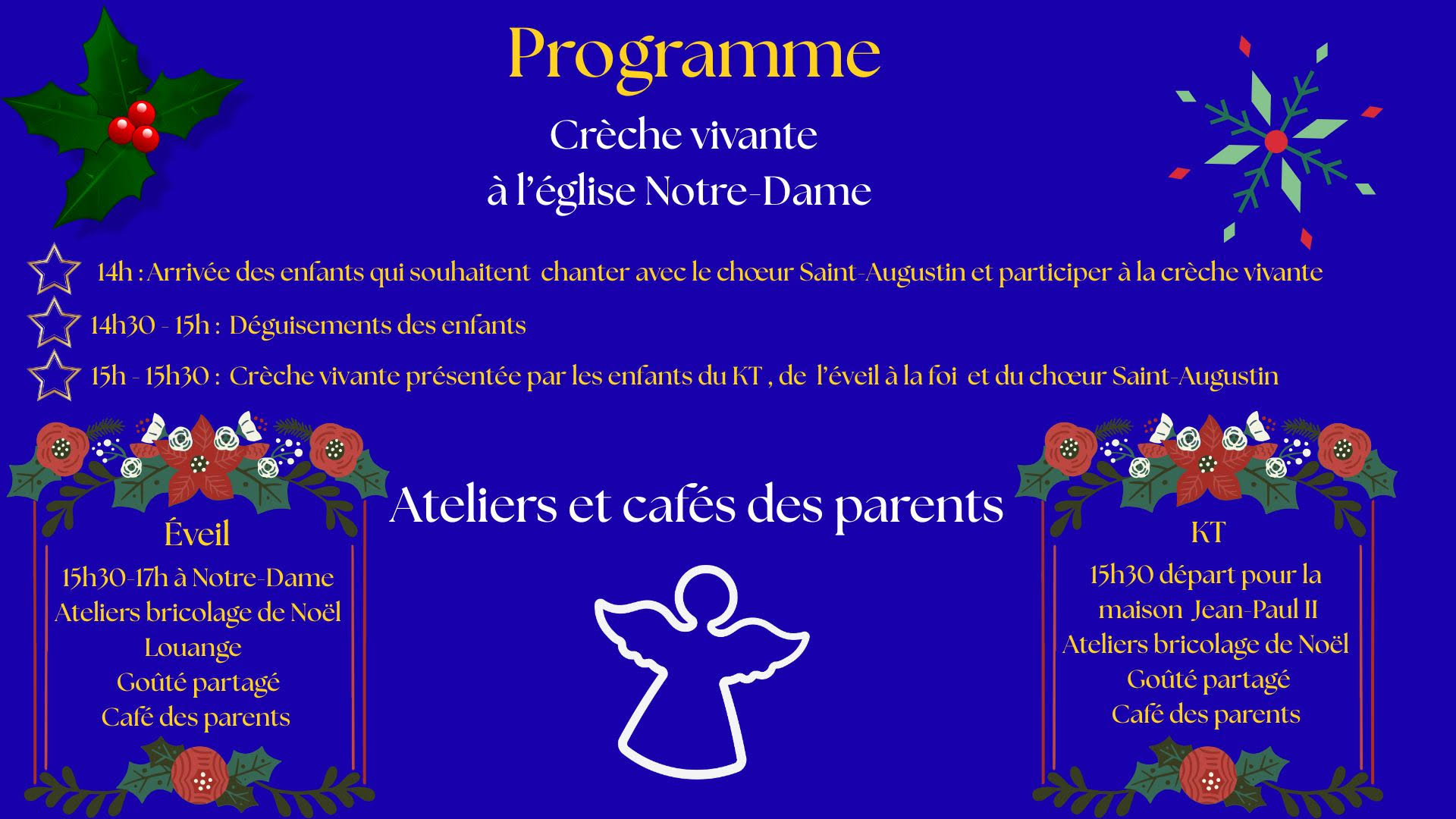 Au programme : Crèche vivante, ateliers bricolage et louange animée par un groupe invité surprise ! Plus de détails en bas de ce mail ;-)