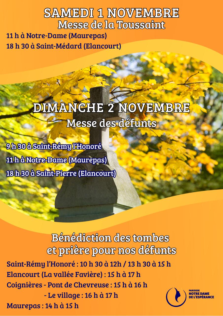 Messe de la Toussaint, Messe des défunts et bénédiction des tombes 1 novembre 2025 – 2 novembre 2025 iCal Calendrier Google Voir le calendrier complet